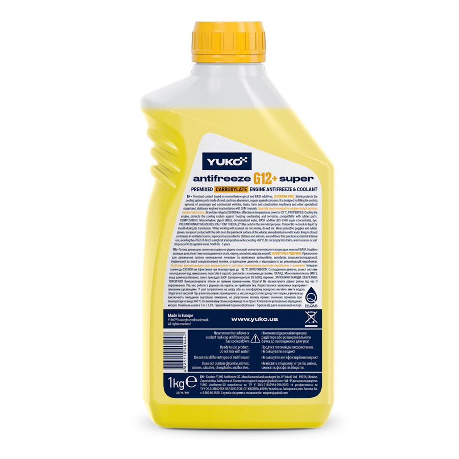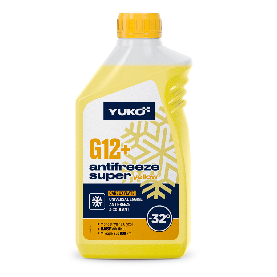 YUKO Antifreeze Super G12+ (жовтий) виготовлено на основі моноетиленгліколю та спеціальних антикорозійних присадок компанії BASF.