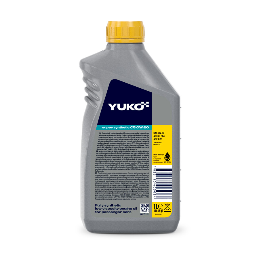 YUKO Super Synthetic C5 0W-20 is a new generation fully synthetic low-viscosity engine oil designed for modern gasoline engines of passenger cars with and without turbocharging, as well as with direct and multi-stage fuel injection systems.