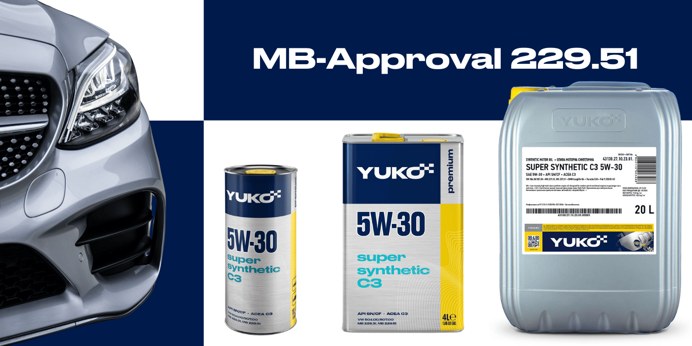 LLC "JV Yukoil" announces a significant achievement – the official MB-Approval 229.51 from Mercedes-Benz AG for its YUKO SUPER SYNTHETIC C3 5W-30 motor oil.